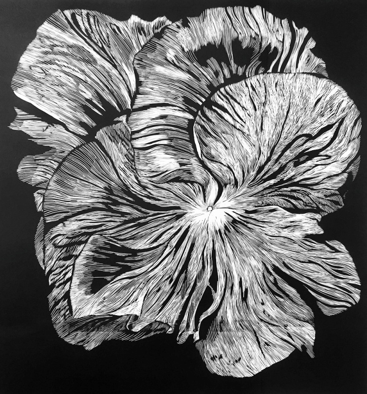 Marta Bożyk posługuje się zbliżeniem kwiatu, personalizuje jego wizerunek. W czerni i bieli linorytu, dystansując się od zmysłowości motywów kwiatowych, koncentruje się na graficzności przedstawienia. Linia jest tu znakiem abstrakcji i wyzwolenia kwiatu z ograniczeń naturalizmu. Niepokojącą kwietną rozsadę proponuje Iwona Ornatowska. Artystka znana wcześniej przede wszystkim z czarno-białej grafiki w świecie form organicznych odnajduje kolor. Bynajmniej jednak nie feerie barwną kwiatu w rozkwicie, lecz stonowaną, by nie rzec złamaną paletę jego przejrzałej formacji. W najnowszych pracach Marty Wakuły-Mac precyzyjny rysunek kwiatu wzbogaca spontaniczny, malarski gest widoczny zarówno w czerni i bieli monotypii, jak i w barwnym linorycie, a nawet w opornej materii, rzadko dzisiaj spotykanego, drzeworytu.