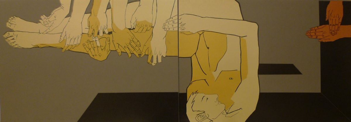 Postać ludzka przedstawiana jest bowiem w momentach największego napięcia, ekwilibrystycznego wręcz wysiłku, który może być kojarzony z wyczynem sportowym. Pomimo napięcia i dynamiki nie ma tu ani naturalizmu, ani ekspresjonistycznego rozdarcia. Figury są posągowe, zamrożone, pogrążone w letargu. A jednak instynktownie dążą ku doskonałości, co nie zawsze się udaje. Pną się wzwyż, lub zniżają loty Ten wektor etyczny podkreślają zdecydowane kierunki; pion-poziom. Nie wpływa to na przeznaczenie, bo człowiek Durskiego ma niewielką wolność wyboru; wpisany jest w geometrię ograniczeń. Racjonalizm niczego tu nie wyjaśnia, a leonardowski, optymistyczny wzorzec homo ad quadratum może odejść do lamusa. Człowiek Durskiego spętany jest nie tylko przez geometryczną klauzurę lecz i ingerencję z zewnątrz, którą symbolizują obcięte lecz ruchliwe i wszechobecne ręce, nośnik rytuałów ale i dyrektyw, gestów przyjaznych lub brutalnie ingerujących w prywatność.[...]